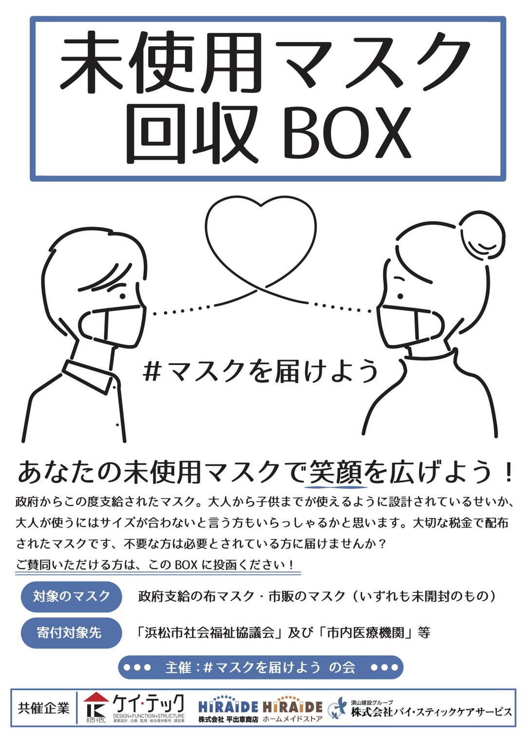 この度、浜松市内の仲間の経営者と一緒に未使用マスクの回収を始めました。